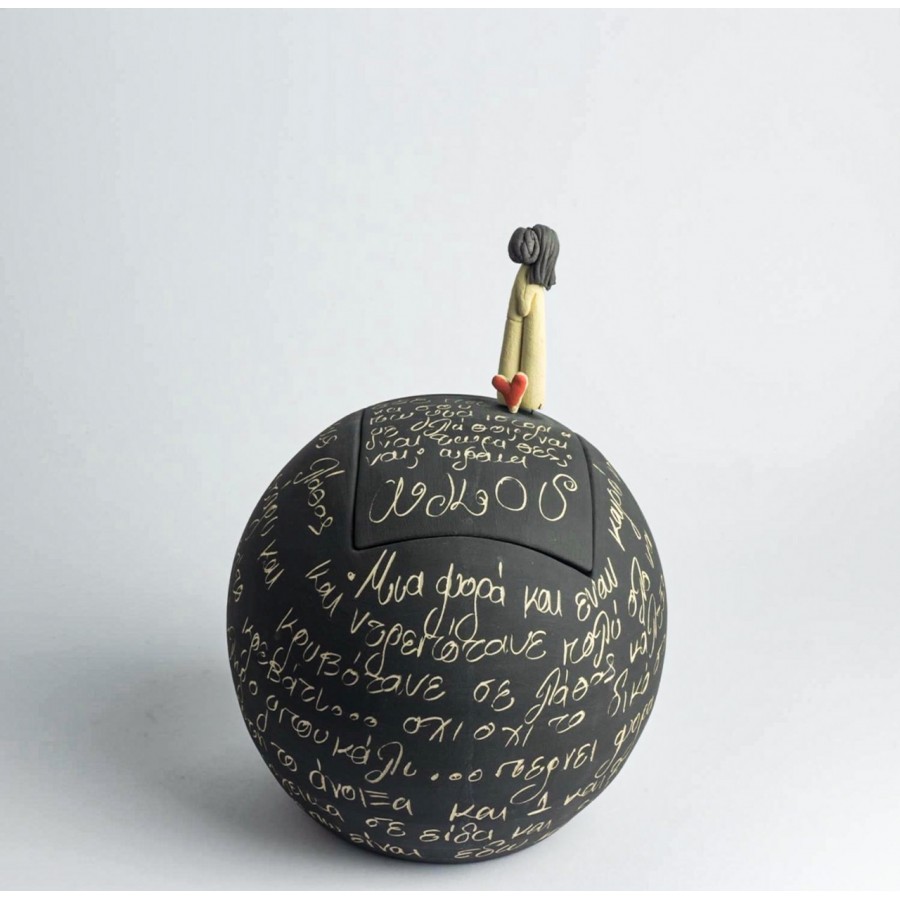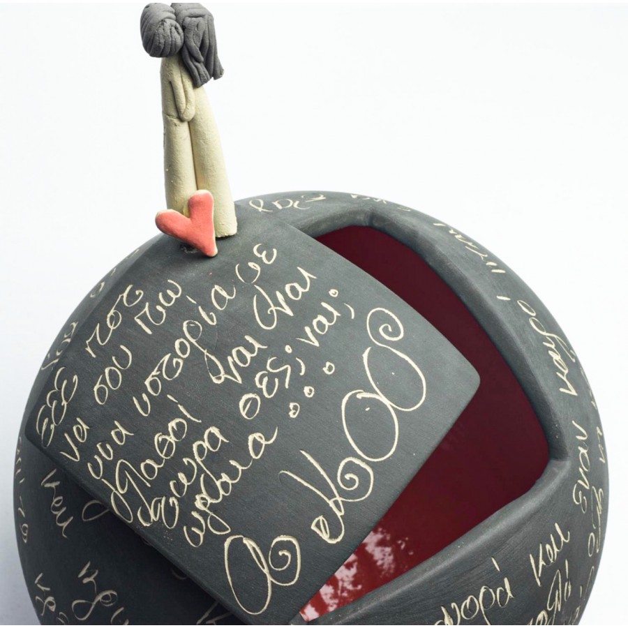 Χειροποίητο κεραμικό κουτί στρογγυλό με ζευγάρι που φιλιέται.