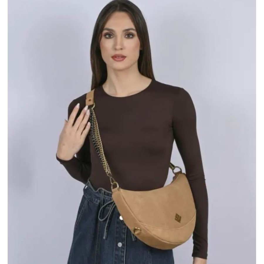 Η Harmonia είναι ιδανική για τις καθημερινές σου βόλτες . Βολική , χωράει όσα ακριβώς χρειάζεσαι για μία γεμάτη ημέρα . Κατασκευασμένη από εξαιρετικής ποιότητας 100% recycled suede δέρμα, διαθέτει υφασμάτινη φόδρα στο εσωτερικό για μεγαλύτερη αντοχή και λειτουργικότητα .Διαθέτει δερμάτινο ιμάντα με τριπλή μεταλλική αλυσίδα για μια πιο stylish αισθητική .