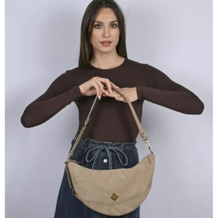 Η Harmonia είναι ιδανική για τις καθημερινές σου βόλτες . Βολική , χωράει όσα ακριβώς χρειάζεσαι για μία γεμάτη ημέρα . Κατασκευασμένη από εξαιρετικής ποιότητας 100% recycled suede δέρμα, διαθέτει υφασμάτινη φόδρα στο εσωτερικό για μεγαλύτερη αντοχή και λειτουργικότητα .Διαθέτει δερμάτινο ιμάντα με τριπλή μεταλλική αλυσίδα για μια πιο stylish αισθητική .