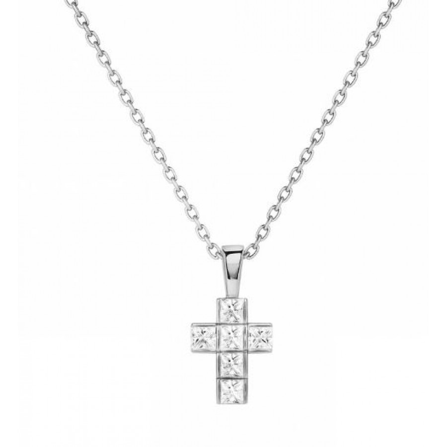 Κολιέ σταυρός -ριβιέρα mini με πέτρες ζιργκόν