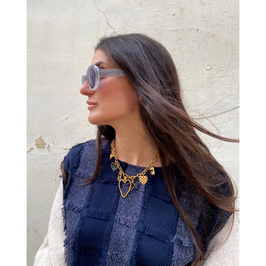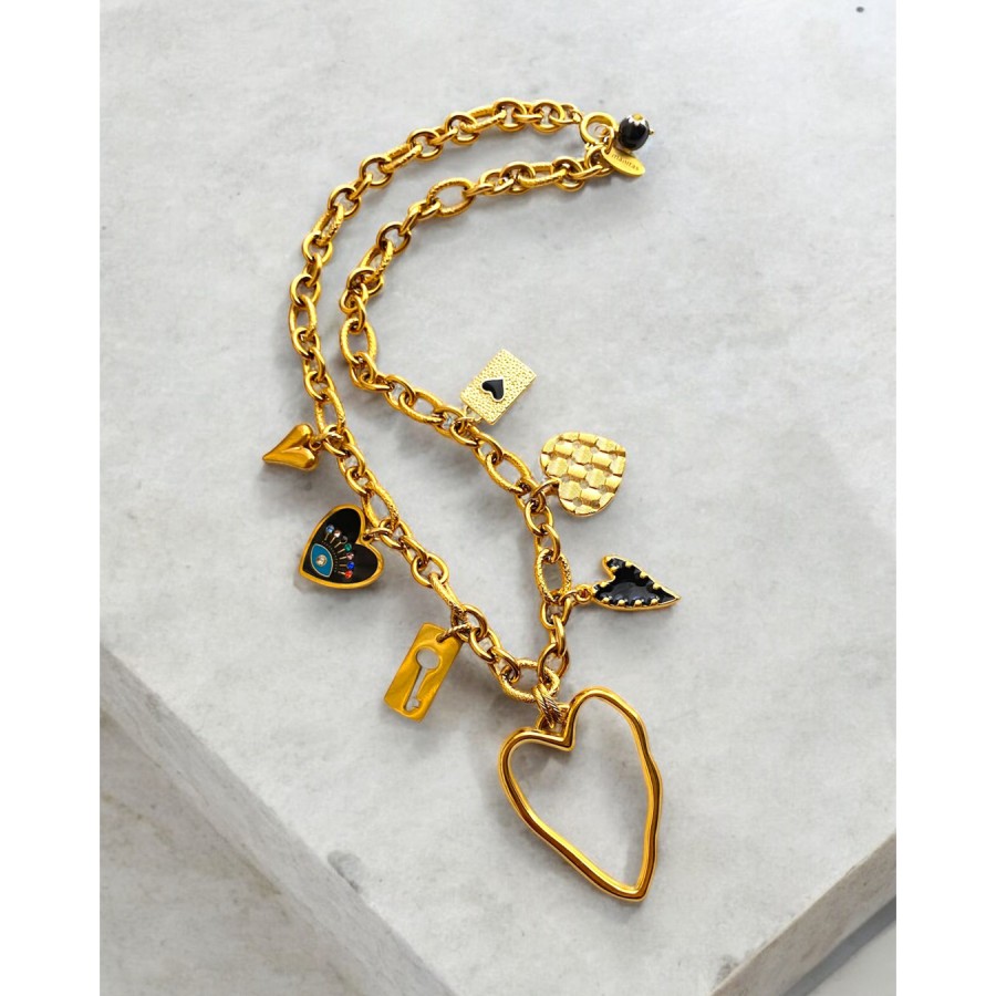 Χειροποίητο κολιέ από ανοξείδωτο ατσάλι , charms καρδιές και μαύρο σμάλτο .