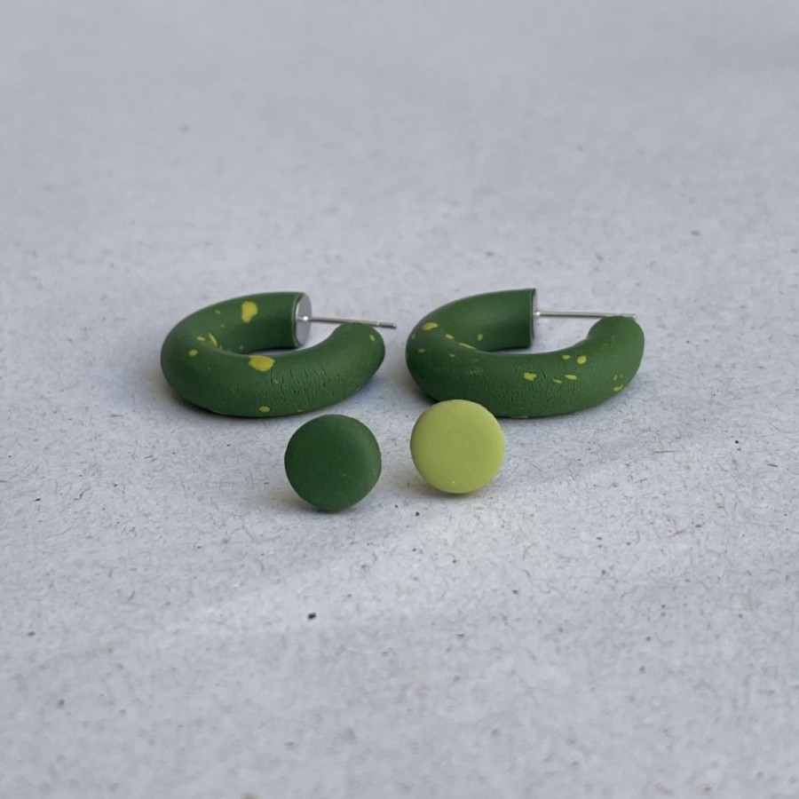 Χειροποίητα σκουλαρίκια από πολυμερικό πηλό ..δύο ζευγάρια,πολλές επιλογές.Ένα σετ που περιλαμβάνει : statement κρίκους με πιτσιλιές χρώματος και μίνιμαλ στρογγυλά καρφωτά σε αντίστοιχους τόνους , Συνδυάζονται ή φοριούνται χωριστά ανάλογα τη στιγμή .