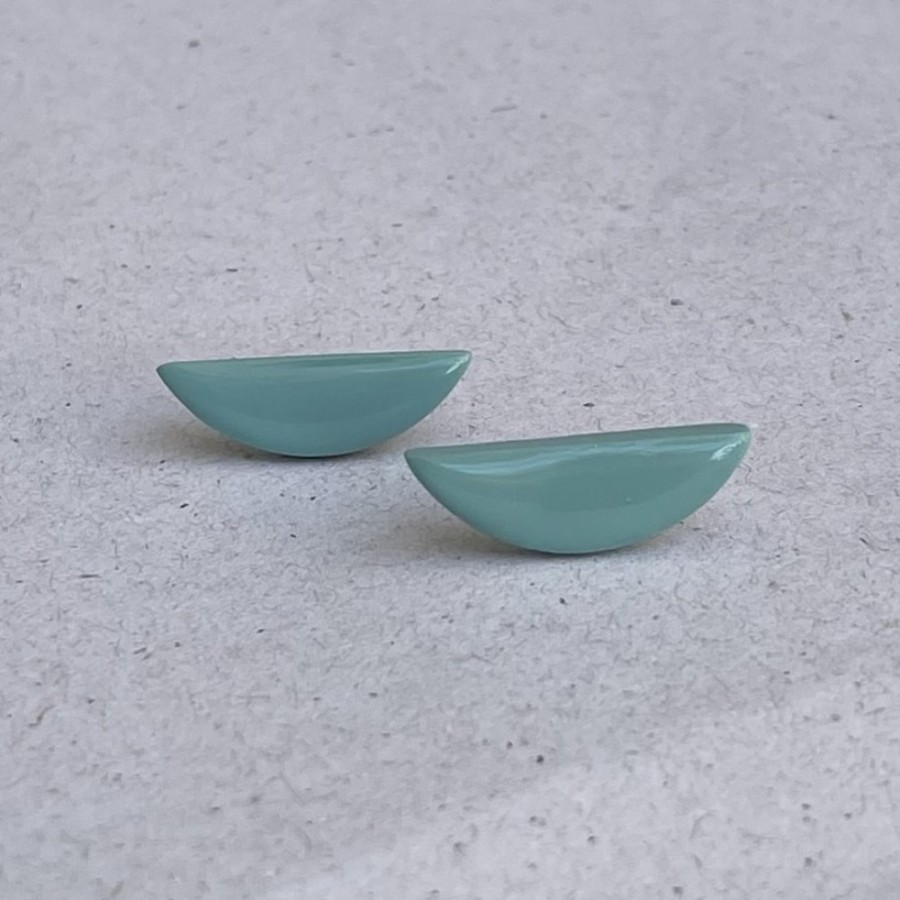 Χειροποίητα σκουλαρίκια σε τοξωτό σχήμα σε μικρή κλίμακα και glossy υφή .Διακριτική επιλογή για όσες αγαπούν τη λεπτομέρεια στο αυτί αλλά θέλουν κάτι διαφορετικό από το κλασικό.
