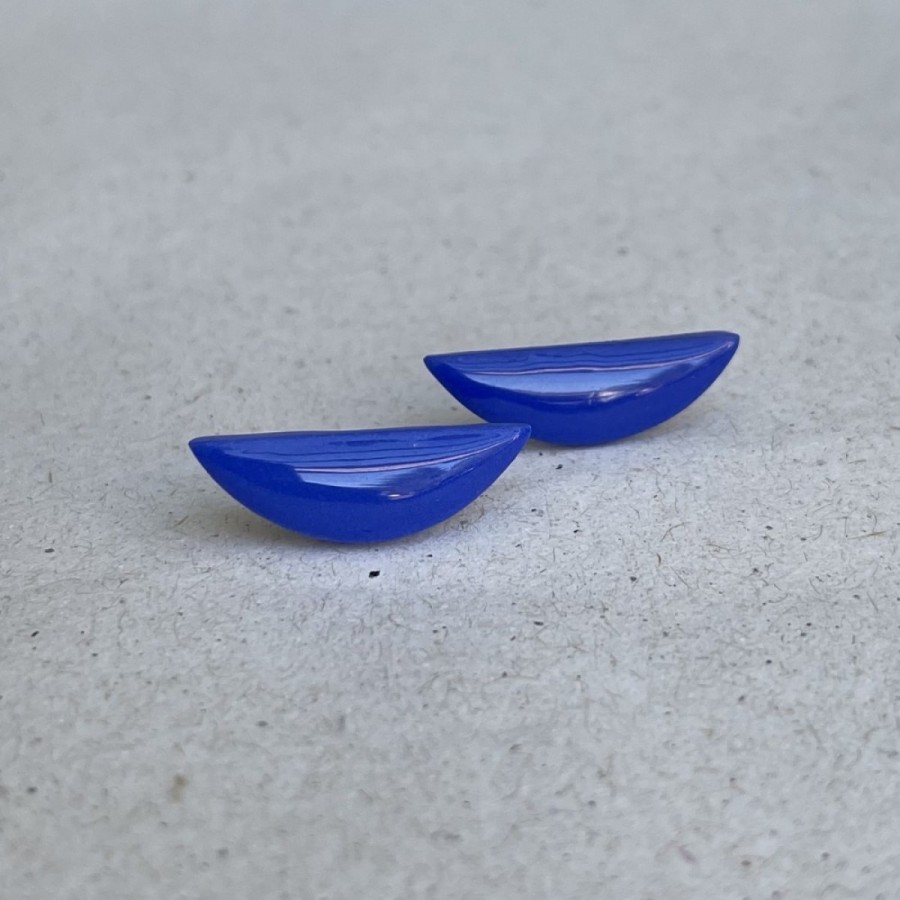 Χειροποίητα σκουλαρίκια σε τοξωτό σχήμα σε μικρή κλίμακα και glossy υφή .Διακριτική επιλογή για όσες αγαπούν τη λεπτομέρεια στο αυτί αλλά θέλουν κάτι διαφορετικό από το κλασικό.