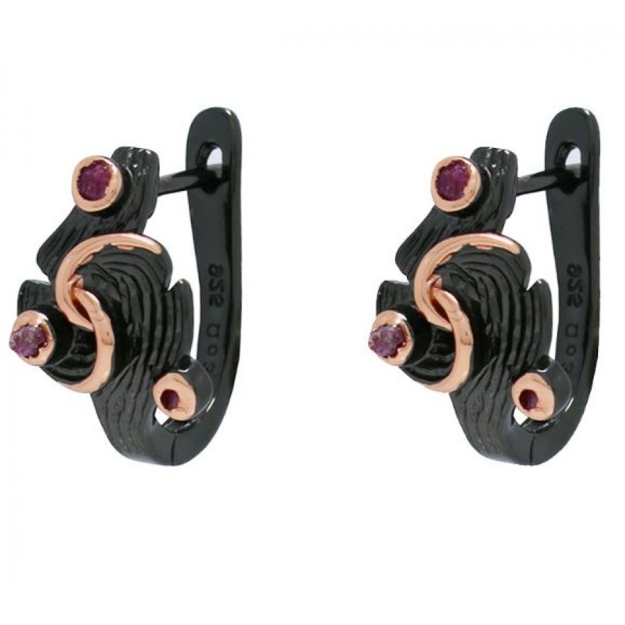 Σκουλαρίκια με ορυκτές πέτρες από ακατέργαστο ρουμπίνι . .
